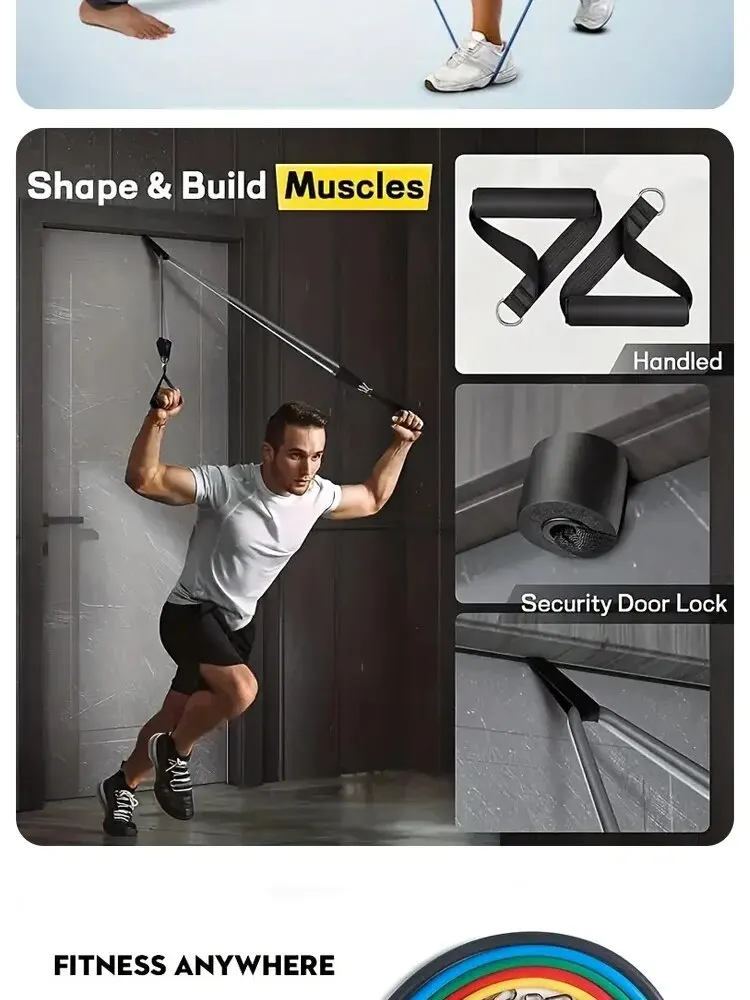 • Versatile Fitness Tool :This 11PCs set includes door anchor handles, carry bag, and ankle straps, making it a versatile fitness tool for various exercise routines.