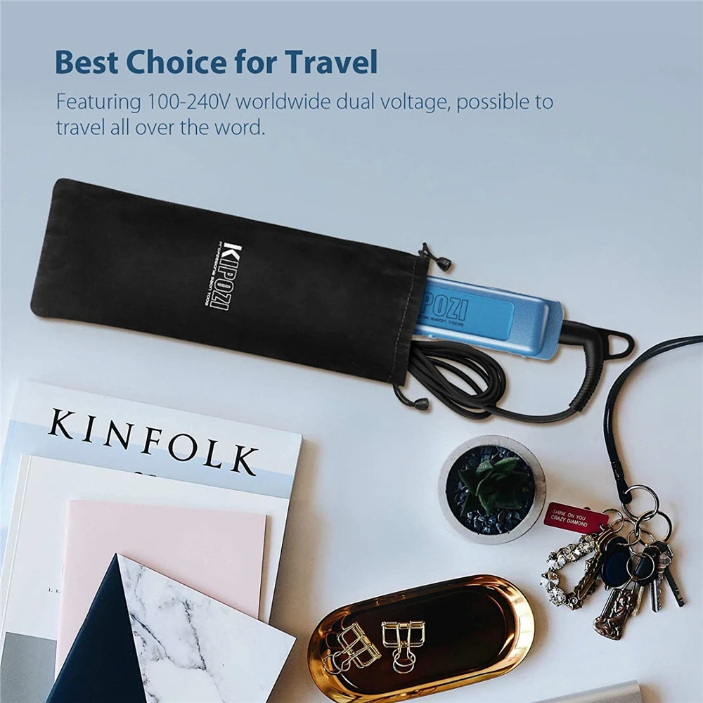 2025 KIPOZI Professional Titanium Flat Iron Hair Straightener with Digital LCD Display Dual Voltage Instant Heating Curling Iron