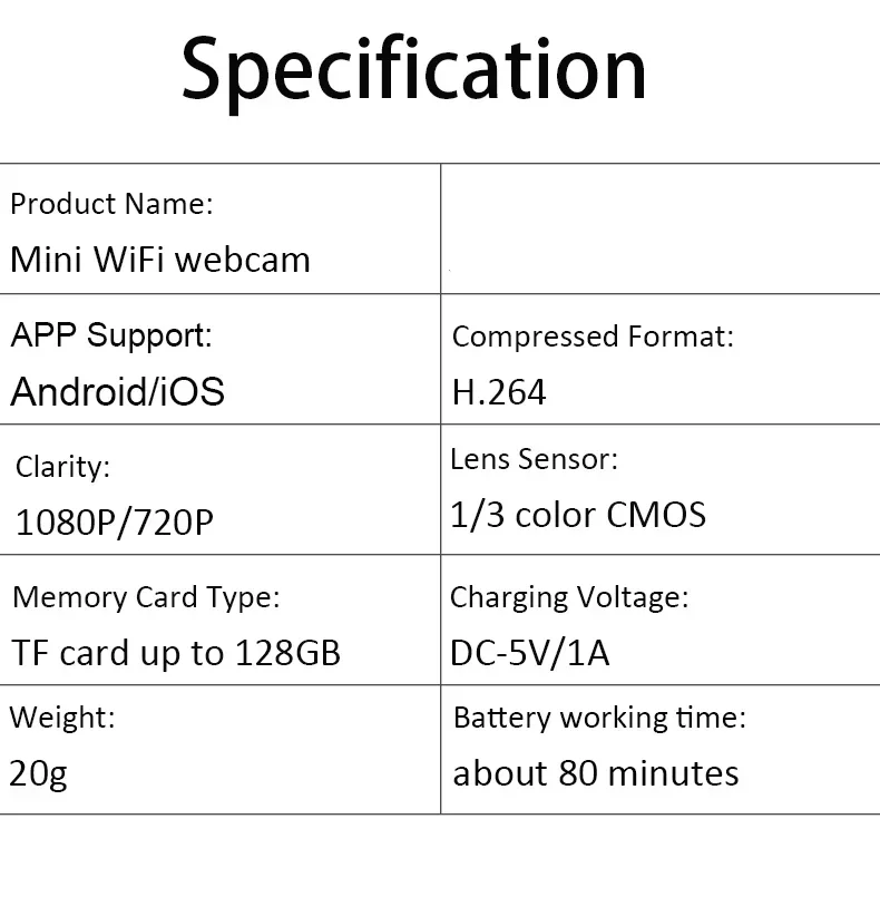 H6 1080P Product parameters