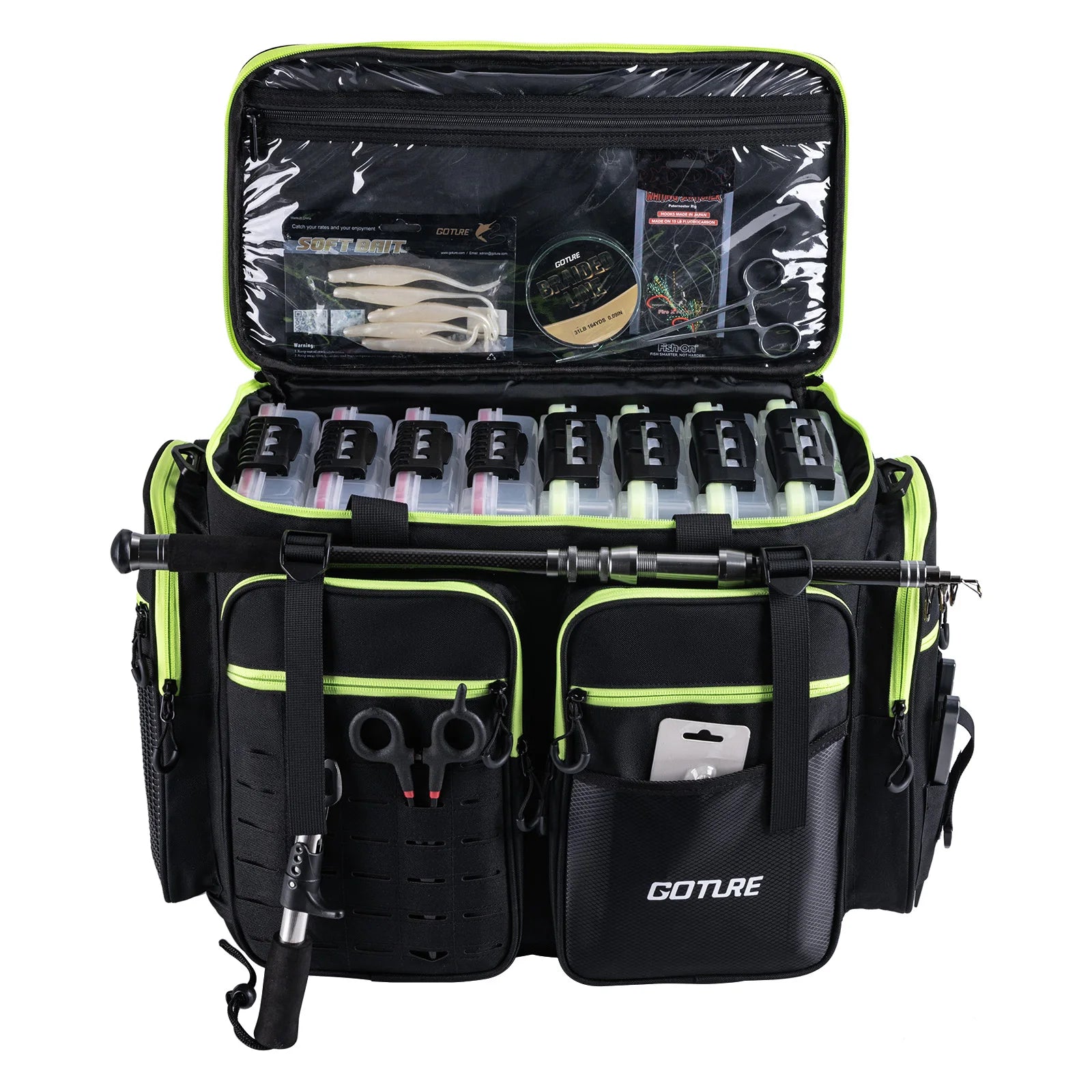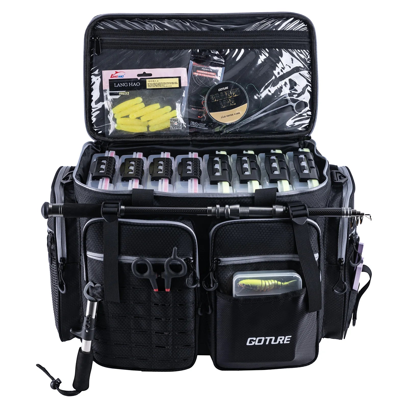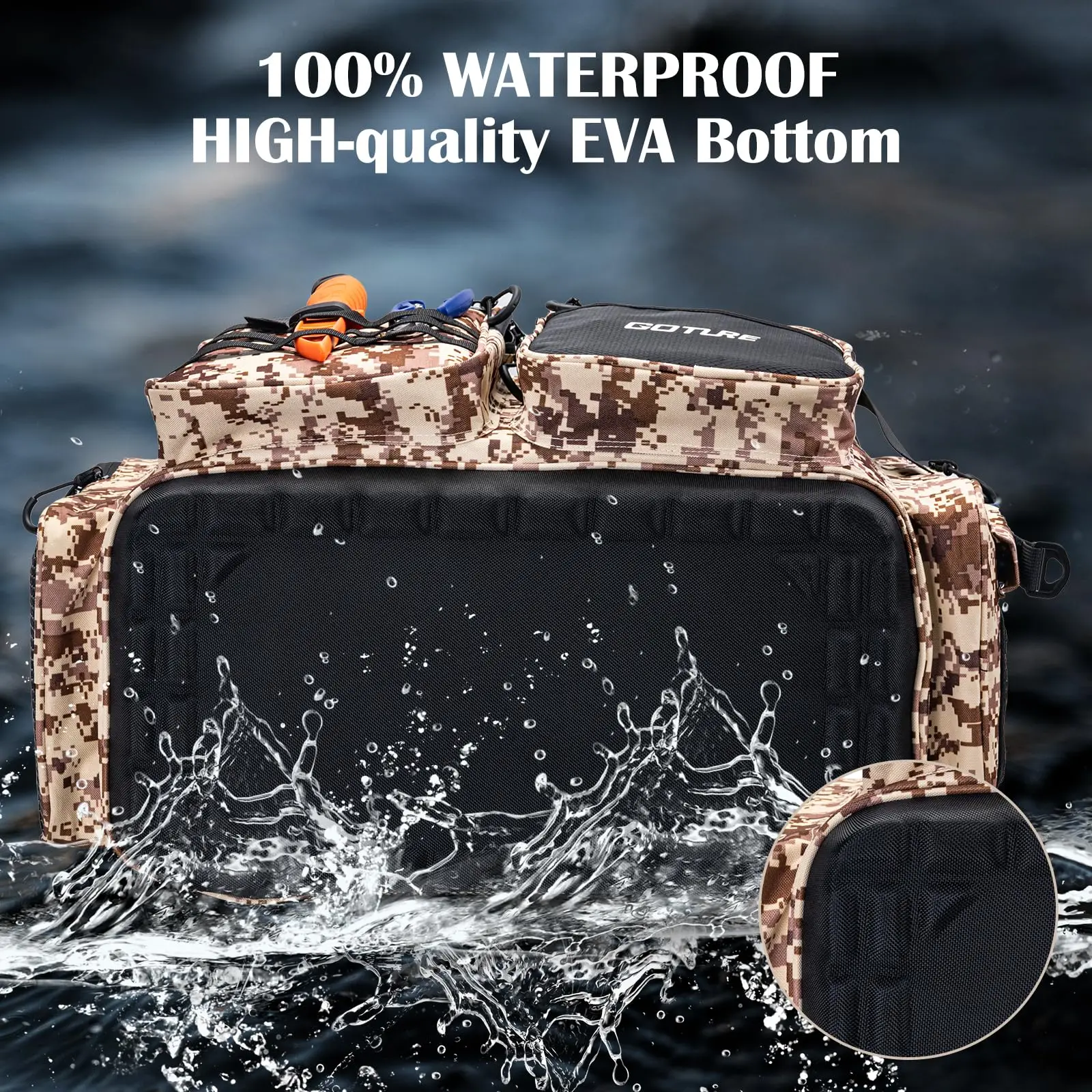 Goture Large Capacity Fishing Tackle Bag Waterproof EVA Hard Bottom Fishing Accessories Gear Storage Pack Outdoor Camping Bag