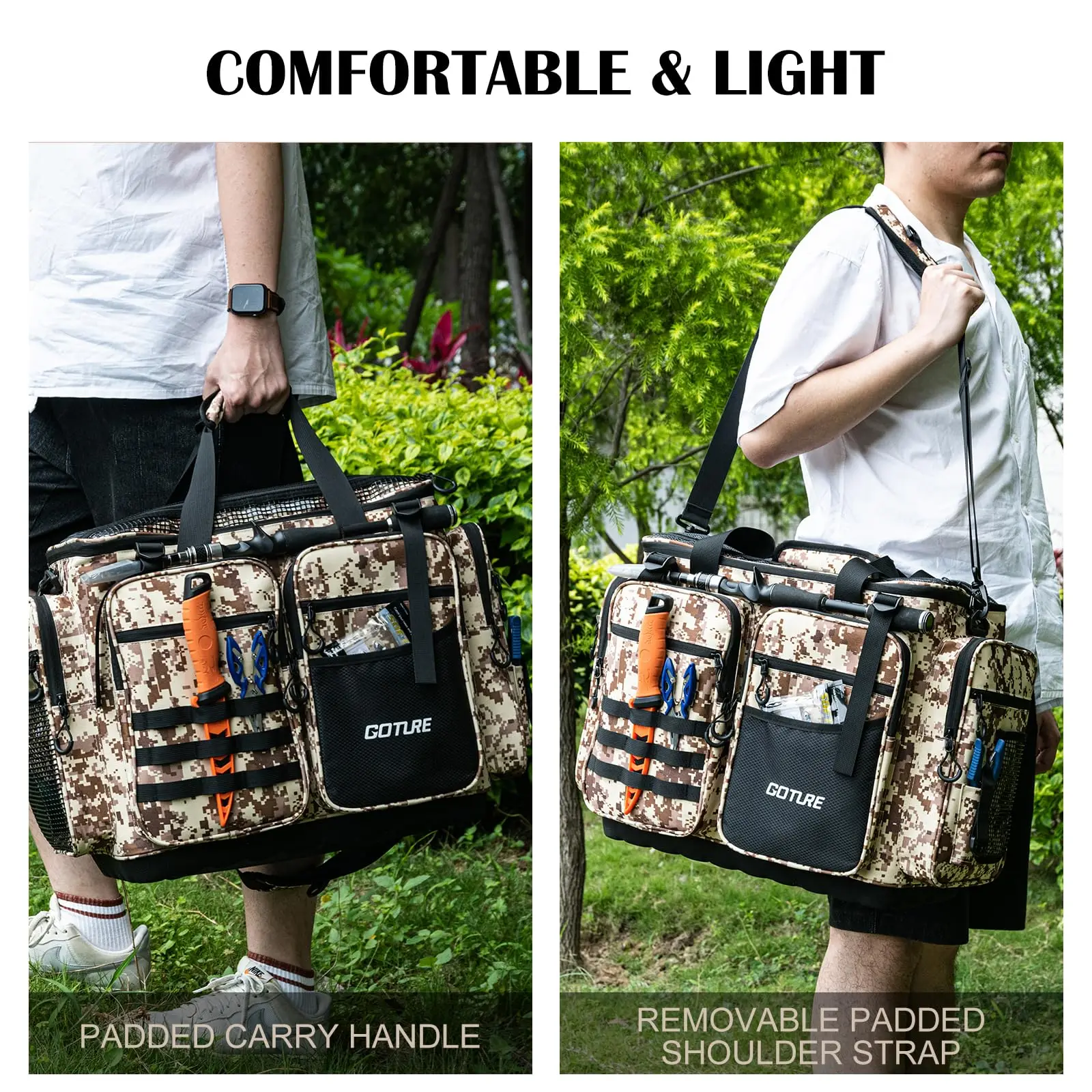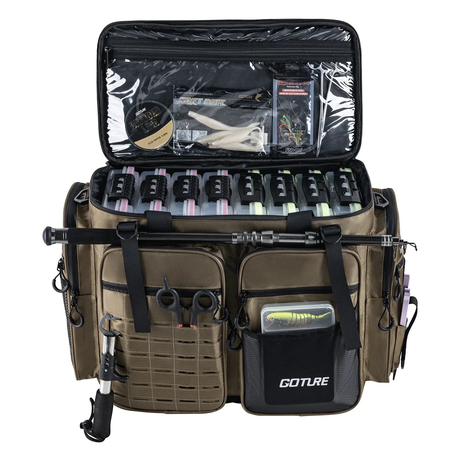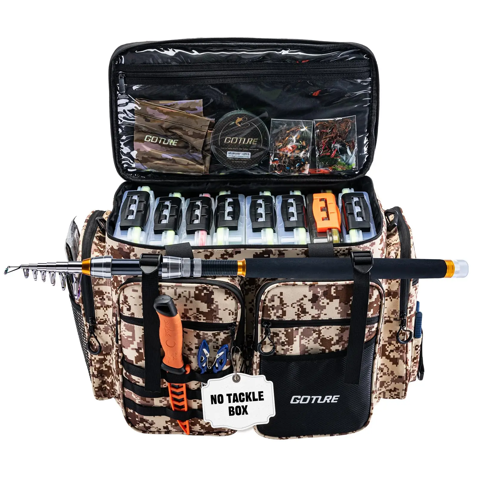 Goture Large Capacity Fishing Tackle Bag Waterproof EVA Hard Bottom Fishing Accessories Gear Storage Pack Outdoor Camping Bag