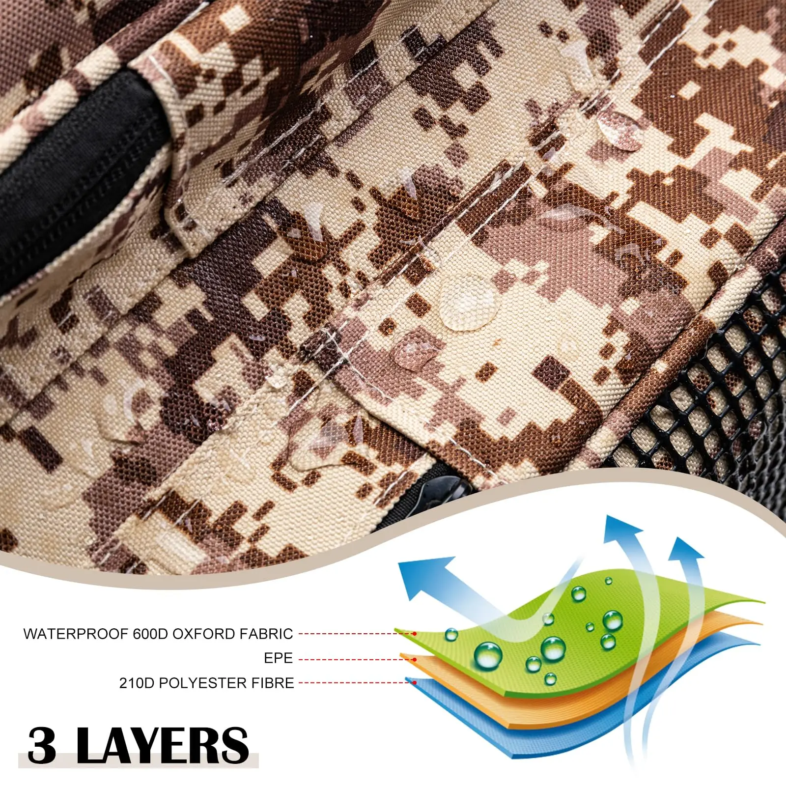 Crafted from thick 600D waterproof Oxford fabric with PVC layers and pearl cotton on the inside, The large fishing tackle storage bag offers superior wear resistance and dual protection against scratches, and the bottom adds an extra layer of IPX5 waterproof EVA molded base to ensure your fishing tackle is protected from damage and the elements