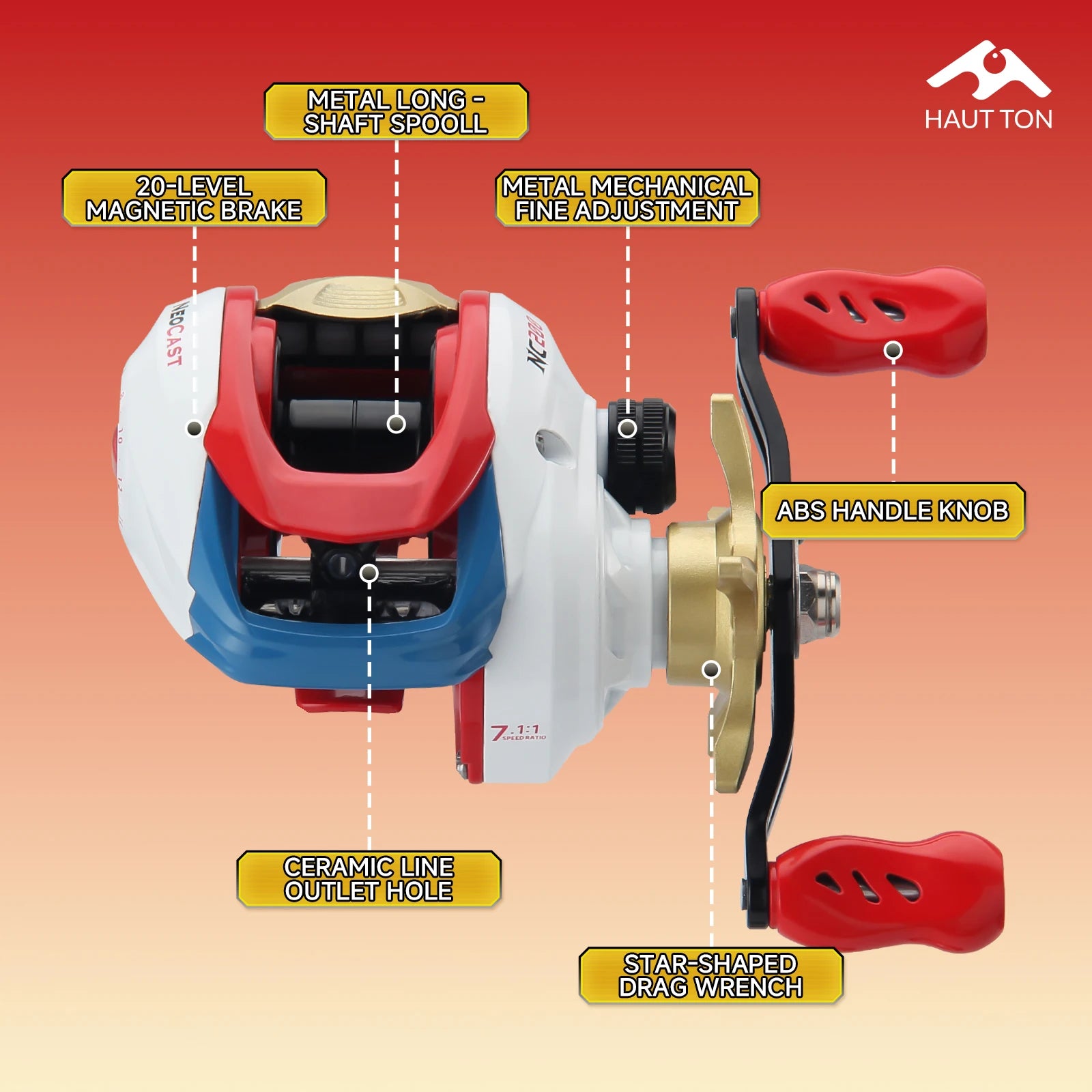 HAUT TON Baitcasting Reel 5KG Max Drag 7.1:1GearRatio 3+1 Metal Bearings Ultralight Smooth For Freshwater Saltwater Fishing Reel