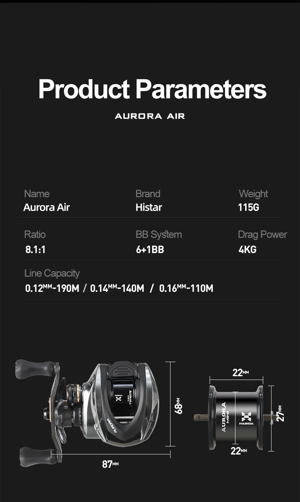 Histar Aurora AIR Light Lure BFS Bait Finesse System AT7 Aluminum Spool 115G UL 3D Dynamic Magnetic Braking Baitcasting Reel