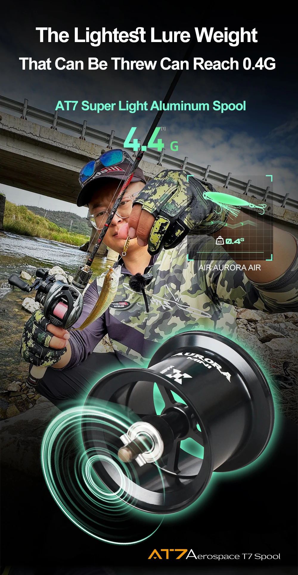 1.115G Ultra Light Reel Weight, 4.4G AT7 Super Light Aluminum Spool.