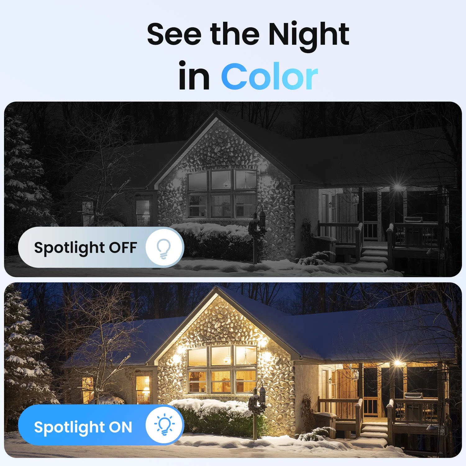 Powerful light + siren dual alarms to deter intruders and alert you in real-time.